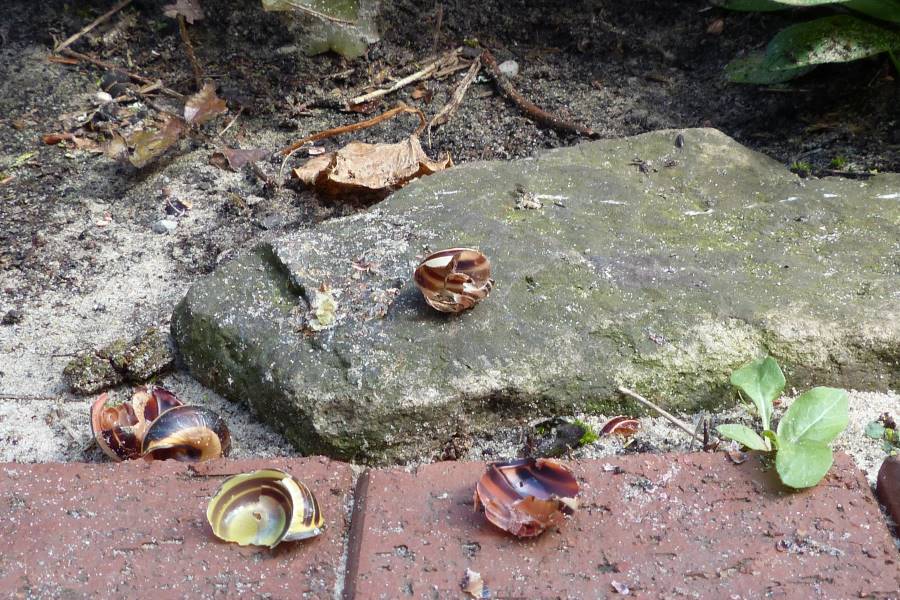 Amseln jedoch legen Schnecken manchmal auf einen Stein und hacken so lange auf das Gehäuse ein, bis es zerbricht. Einen solchen Ort nennt man Amselschmiede.