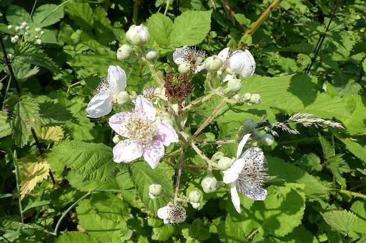 Brombeeren versuchen, sich durch Dornen zu schützen. Die Büsche können bis zu drei Meter hoch werden und ein undurchdringliches Dickicht bilden. Die Blüten sind meistens weiß und erscheinen zwischen Juni und August. Nach der Bestäubung entstehen die Früchte.