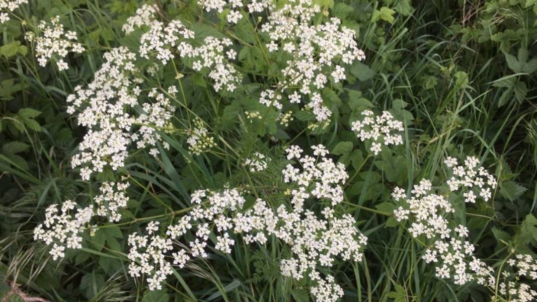 Der Wiesenkerbel ist bei uns häufig und weit verbreitet. Die Pflanze wird 60 bis 150 Zentimeter hoch. Die Stängel sind hohl. Die kleinen Blüten sind weiß, sie blühen von April bis Juli. Bei Berührung kann der Wiesenkerbel auf der Haut allergische Reaktionen hervorrufen.
