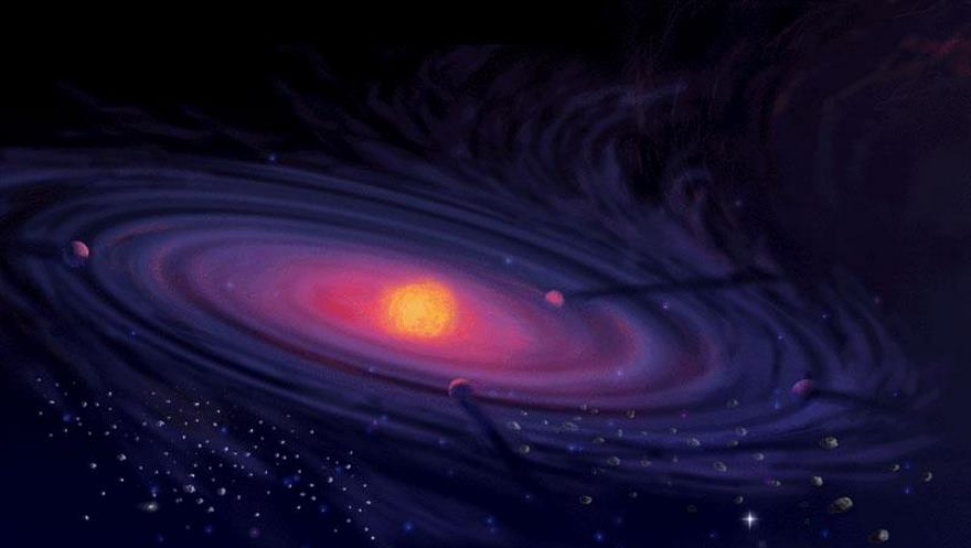 Durch Zusammenstöße und unter dem Einfluss der Schwerkraft bildeten sich darin zunächst kleine Staubkugeln, die immer mehr Staub und Gas anzogen. Viele wuchsen schließlich zu großen Gebilden heran. Doch nur acht von ihnen schafften es, zu Planeten zu werden, die alle Materie in ihrer Nähe anzogen und so an Masse immer mehr zunahmen.