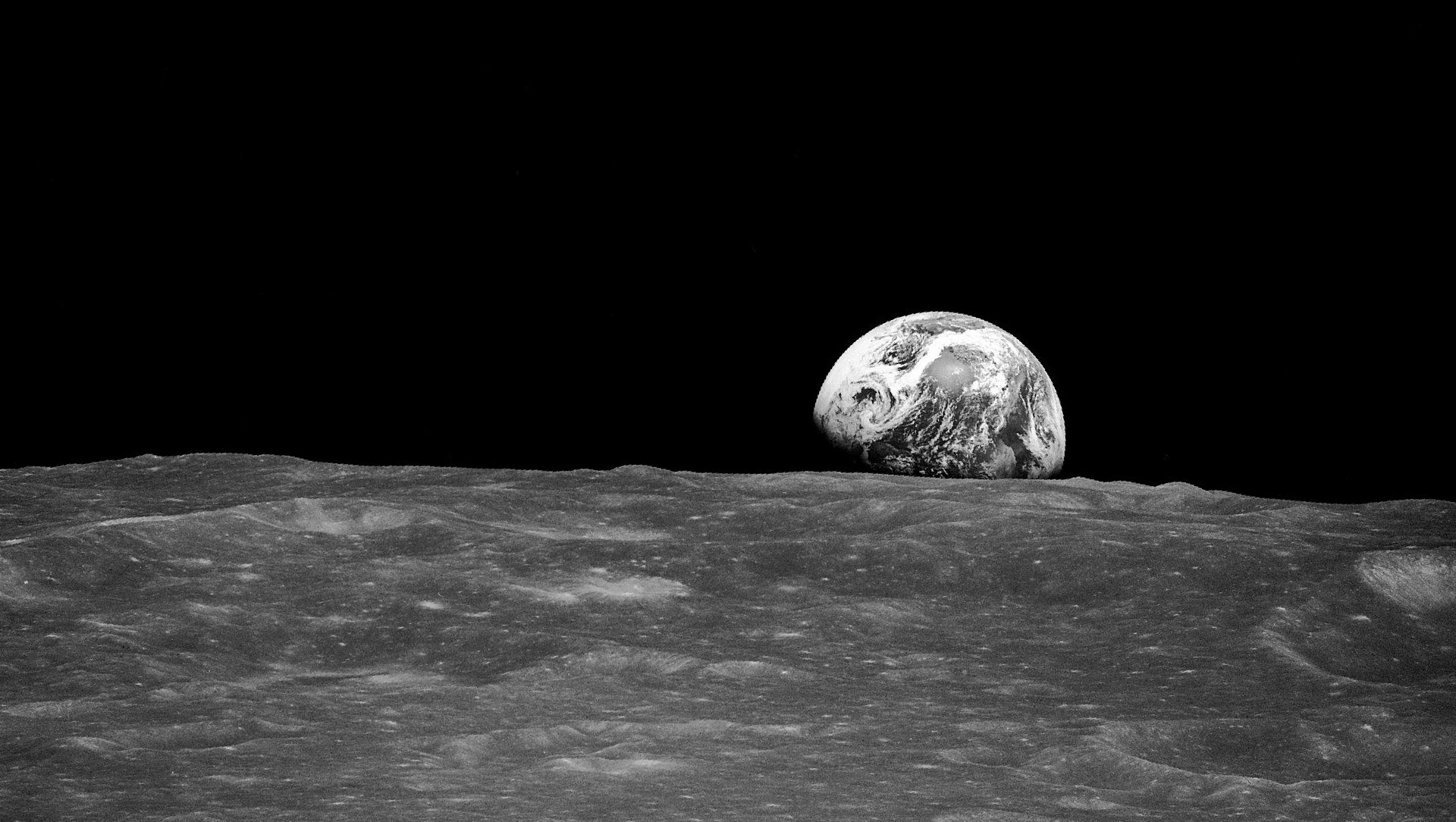 Die Erde, fotografiert aus einem Raumschiff, das den Mond umkreist