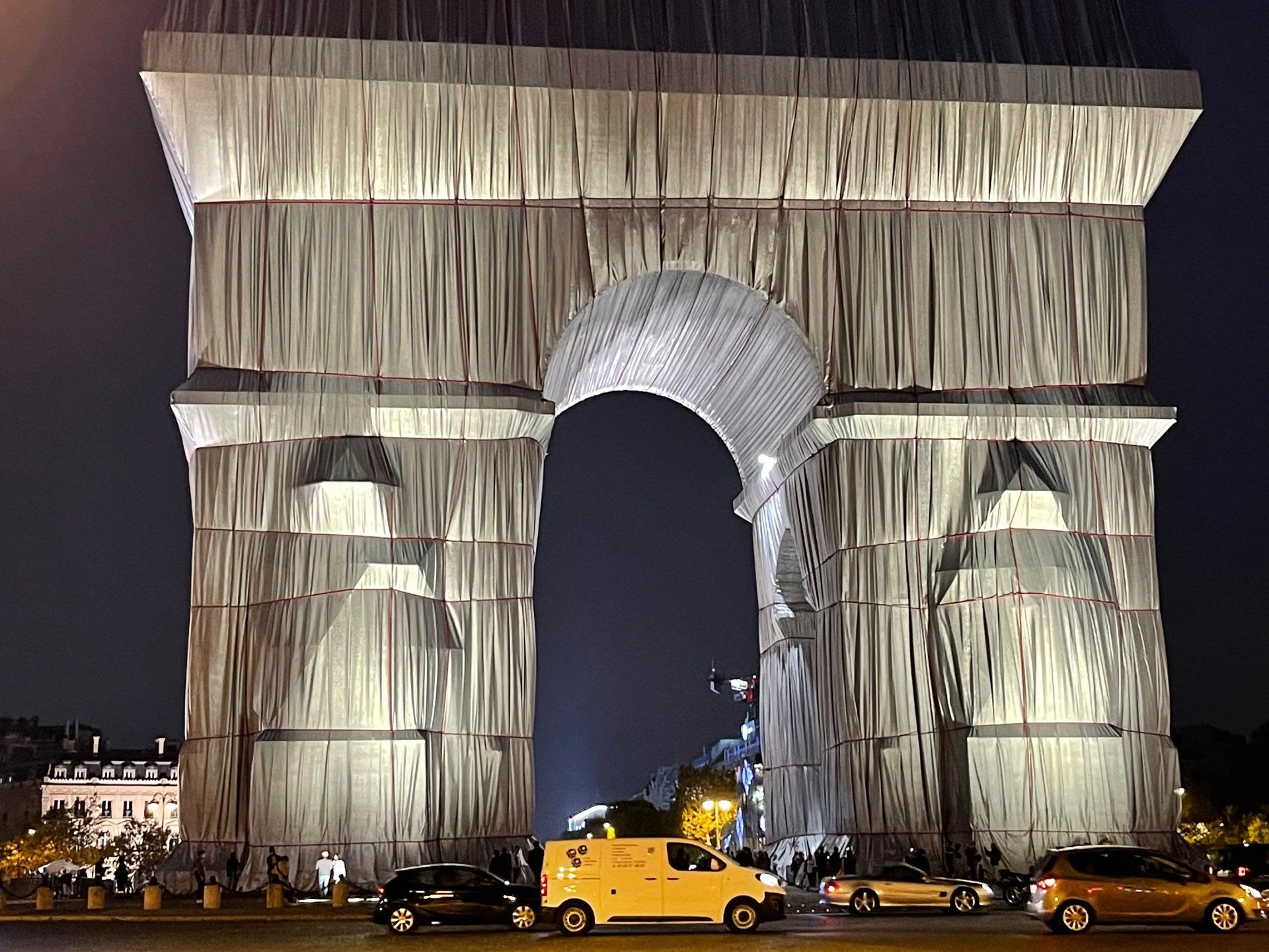 2 - Vom 19. September bis zum 3. Oktober 2021 war der Arc de Triomphe verhüllt. Diese Aktion war das letzte Werk des bulgarischen Künstlers Christo. Er hat die Verwirklichung seiner Pläne nicht mehr erlebt, denn er starb im Mai 2020.