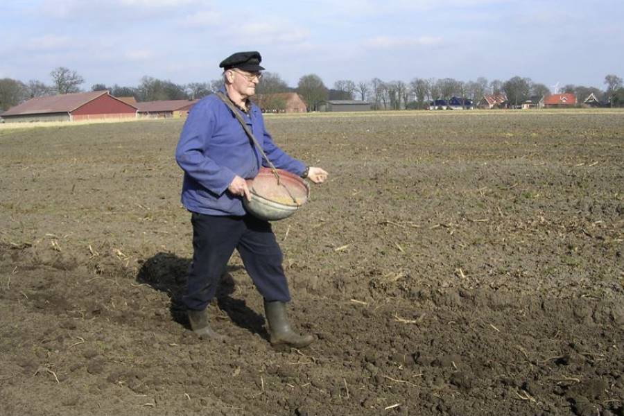 Früher wurden die Samenkörner mit der Hand ausgesät. Anschließend musste der Acker ein weiteres Mal geeggt werden. Auch das war mühselig und dauerte lange.