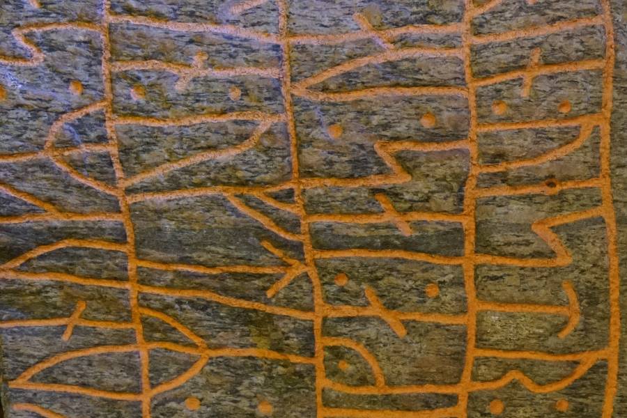 Man fand heraus, dass diese Zeichen zu einer Schrift aus der Zeit der Wikinger gehörten. Diese Schrift benutzte zuerst 24 Zeichen, später nur noch 16. Es sind senkrechte Striche und schräg abstehende Zeichen, waagerechte oder runde Linien gibt es nicht. So ließen sich die Zeichen besser in Stein, Knochen oder Holz ritzen. Man nennt diese Zeichen Runen.