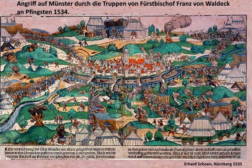 Auch in der Stadt Münster gewann er zahlreiche Anhänger und 1533 gehörten alle Mitglieder des mächtigen Stadtrates der neuen Kirche an. Doch außer Luther traten auch noch andere Prediger auf und verbreiteten ihre Lehren.