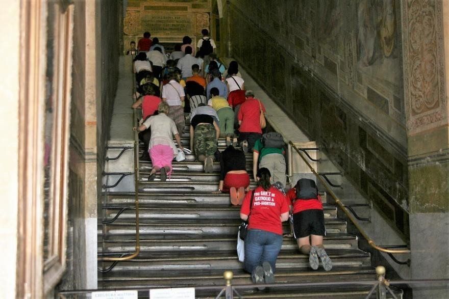Es wird berichtet, dass Luther während seiner Pilgerreise in Rom alle sieben Hauptkirchen und auch die Scala Santa, die "Heilige Treppe" besucht habe. Diese Treppe soll aus dem Palast des Pilatus in Jerusalem stammen und es sollen noch Blutstropfen von Jesus Christus zu sehen sein. Luther betete auf jeder der 28 Stufen ein Vaterunser. Aber er war erschüttert über die Zustände, die er in der Katholischen Kirche beobachtete.