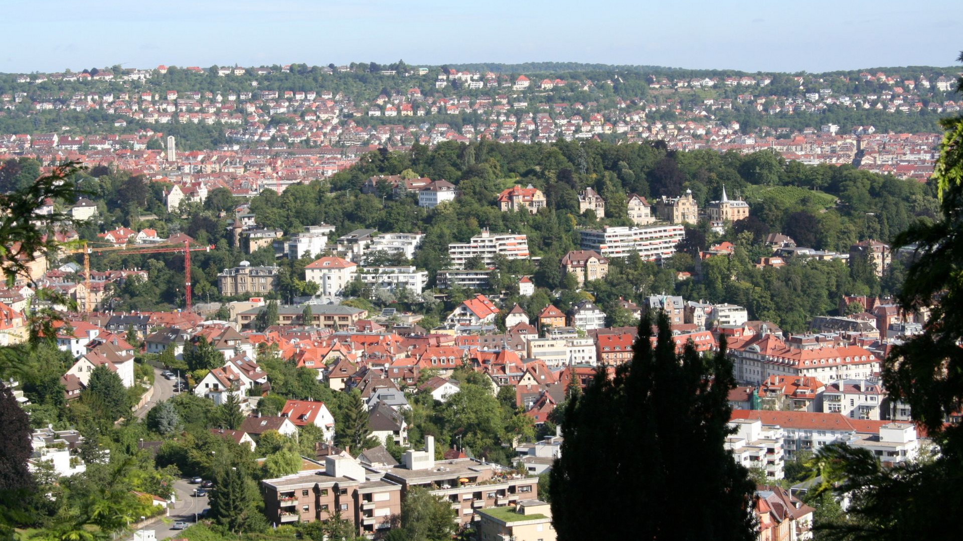 Blick über Stuttgart-Süd und Stuttgart-Heslach auf die Karlshöhe