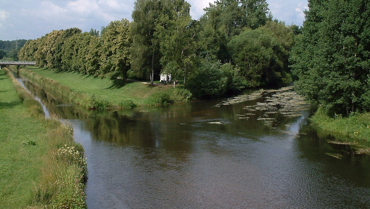 Zusammenfluss von Breg (von links) und Brigach bei Donaueschingen