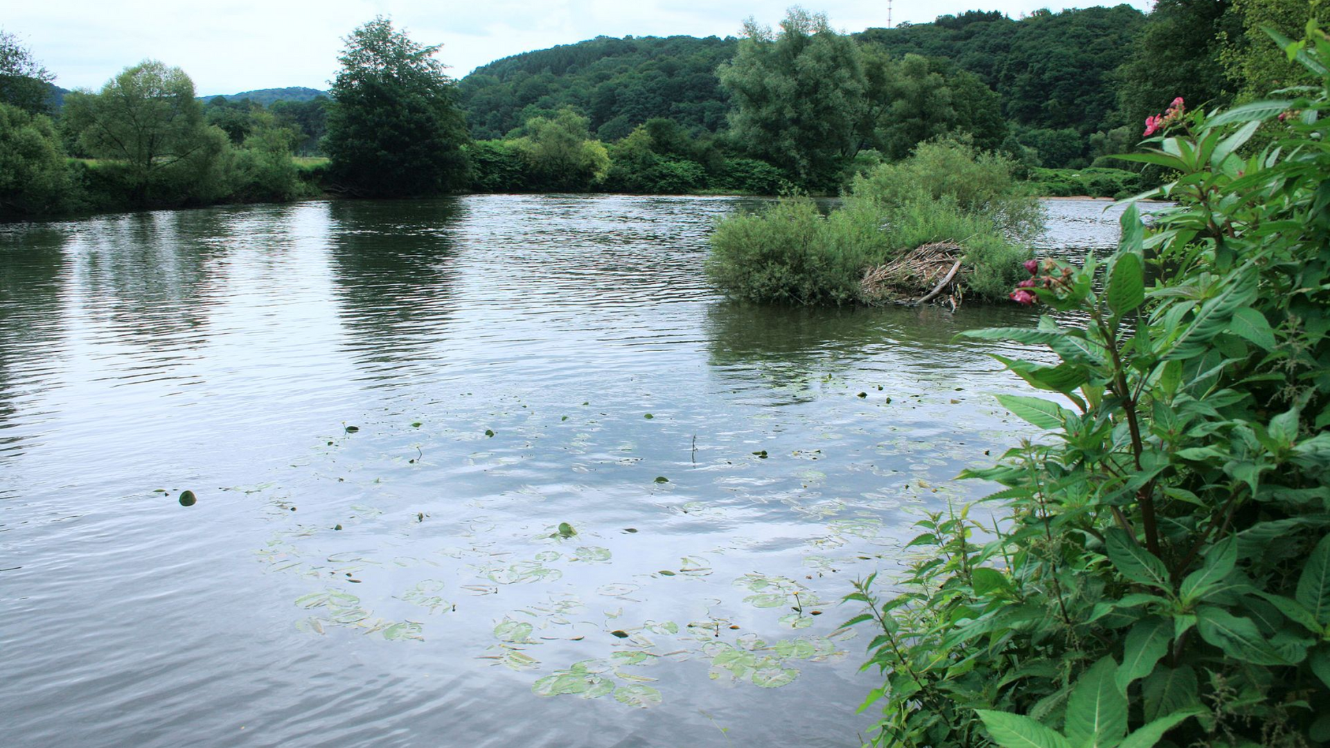 Die Sieg bei Hennef-Stein mit Gelben Teichrosen