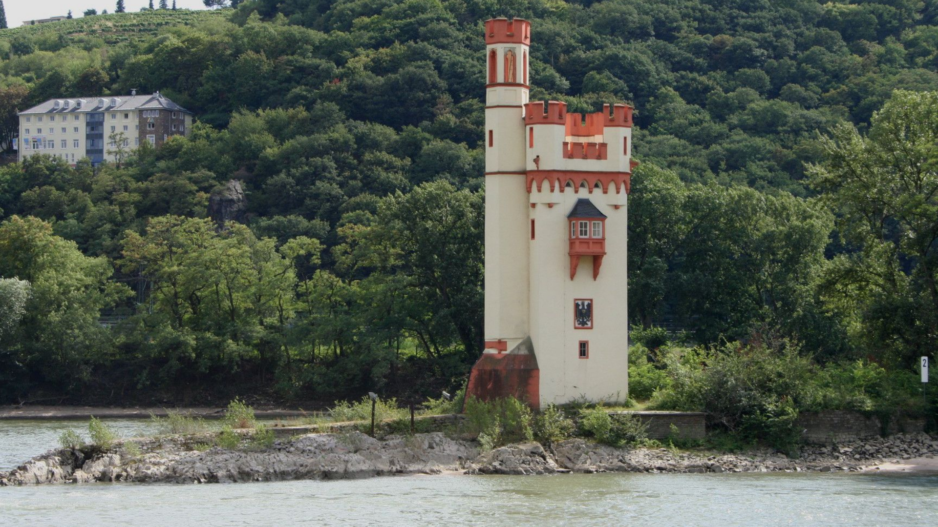1 - Auf einer Insel im Rhein in der Nähe der Stadt Bingen steht ein Turm. Man nennt ihn den Mäuseturm. Er ist fast 700 Jahre alt, knapp 25 m hoch und wurde früher genutzt, um den Schiffsverkehr auf dem Rhein zu regeln.