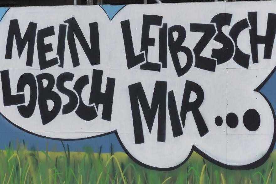 Auf dem Plakat unten steht: "Mein Leibzsch lobsch mir..." Das bedeutet: "Mein Leipzig lob ich mir." In Leipzig wie auch in anderen Teilen Sachsens spricht man nämlich Sächsisch. Es ist einer von vielen Dialekten, durch die wir uns in Deutschland verständigen.