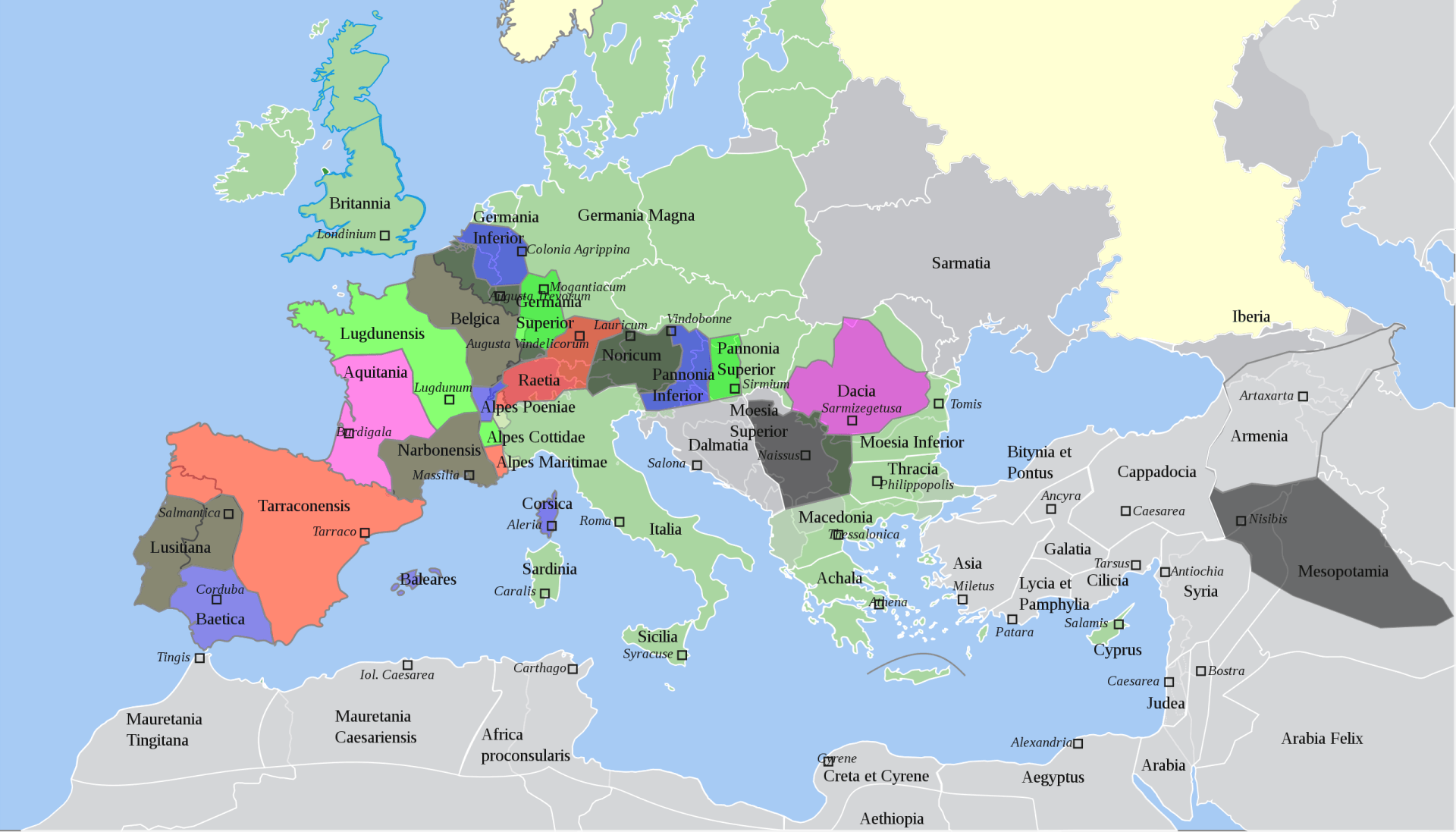 Das Römische Reich zur Zeit des Kaisers Trajan im Jahr 117 n. Chr.