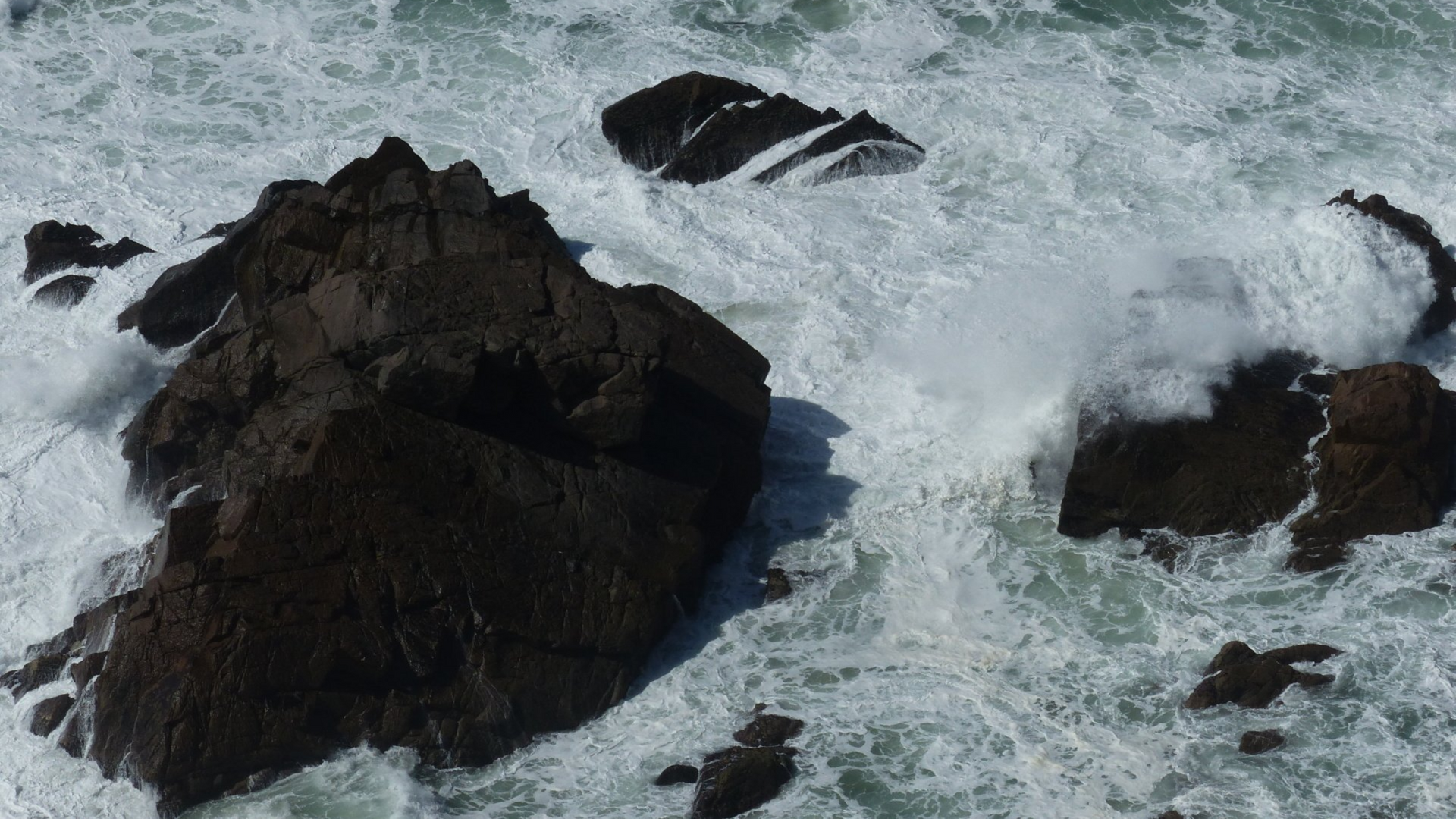 1 - Wir sind in Portugal. Wir stehen auf einem felsigen Hügel. 140 Meter unter uns tost das Meer, das sich nach Westen scheinbar endlos ausdehnt.