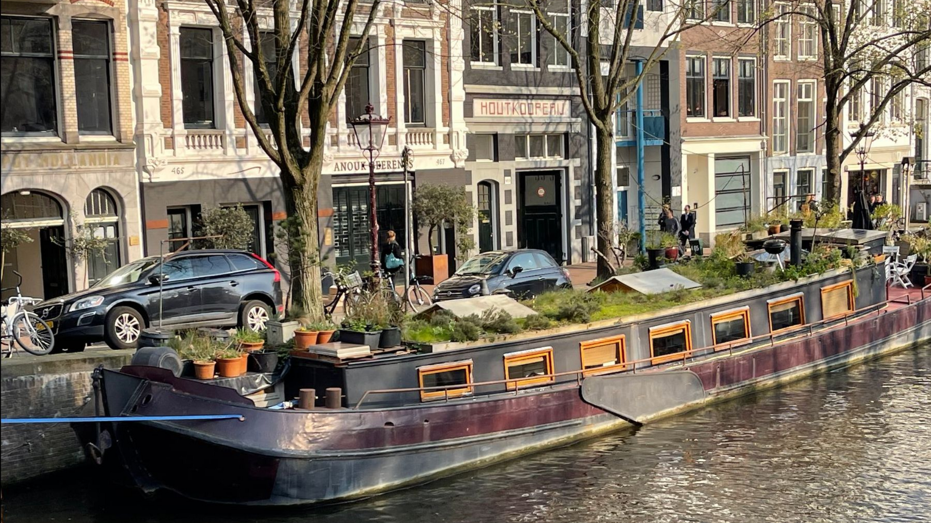 In den Grachten Amsterdams fahren viele Boote umher. Einige jedoch verlassen ihren Liegeplatz nie. Es sind Hausboote, darauf wohnen Menschen. Es sind oft junge Leute oder Künstler, für die das Leben auf dem Wasser in einer großen Stadt einen besonderen Reiz hat. Sie leben, sie kochen, schlafen und manche arbeiten auch hier. Viele lassen das Dach ihrer Boote von Pflanzen bewachsen. Man schätzt, das es in Amsterdam ungefähr 2500 solcher Hausboote gibt.
