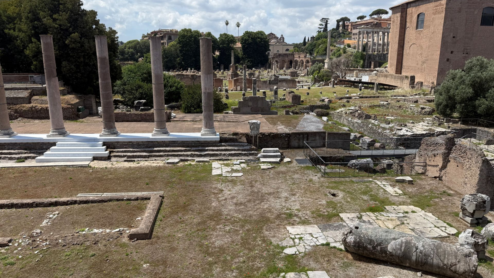 Reste des Forum Romanum in Rom. In der Nähe stand der Tempel der Göttin Juno, in dem einst Gänse lebten.