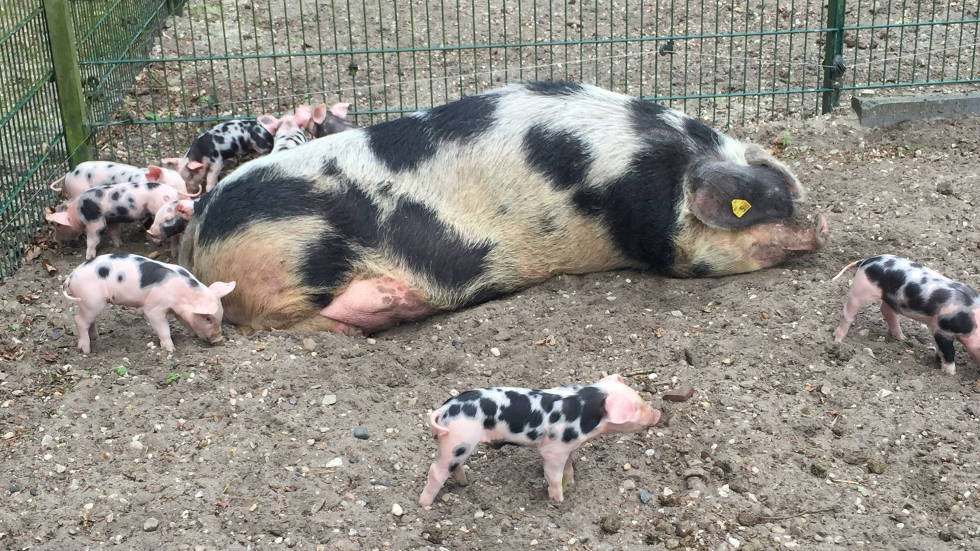 Eine Sau mit ihren Ferkeln