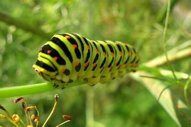 Manche Eier sind nur Bruchteile eines Millimeters groß, andere erreichen die Größe eines Stecknadelkopfes. Besonders beliebte Pflanzen bei der Eiablage sind die Wilden Möhren, Brennnesseln, Gartenmöhren, Kohlpflanzen und der Dill. Nach einigen Tagen schlüpfen aus den Eiern kleine Raupen. Sofort beginnen sie mit ihrer Lieblingsbeschäftigung: fressen. Weil sie so viel futtern, wird ihnen ihre Haut immer wieder zu eng.