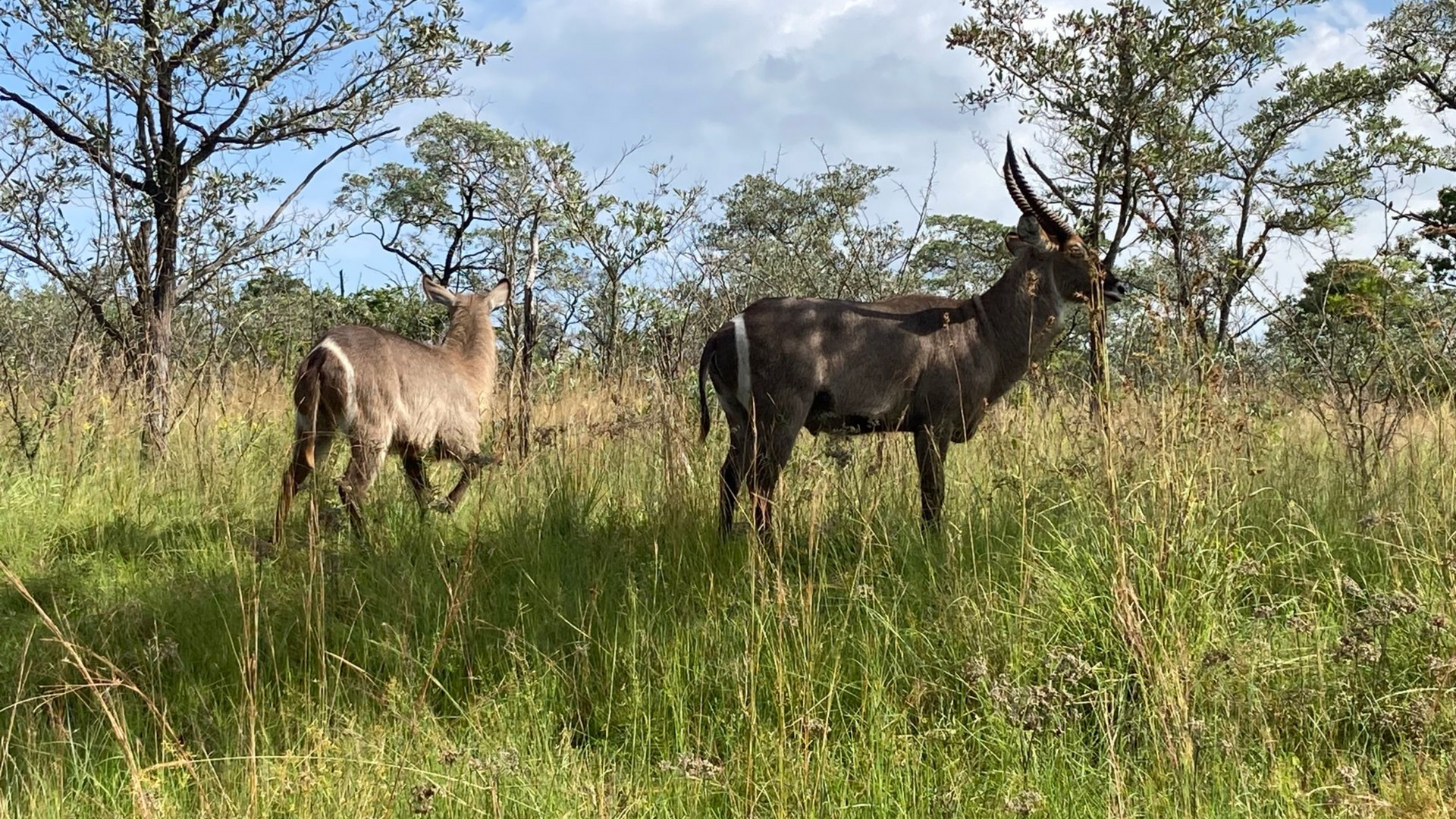 Die weiblichen Rappenantilopen sind kastanienbraun, die männlichen Tiere schwarz gefärbt
