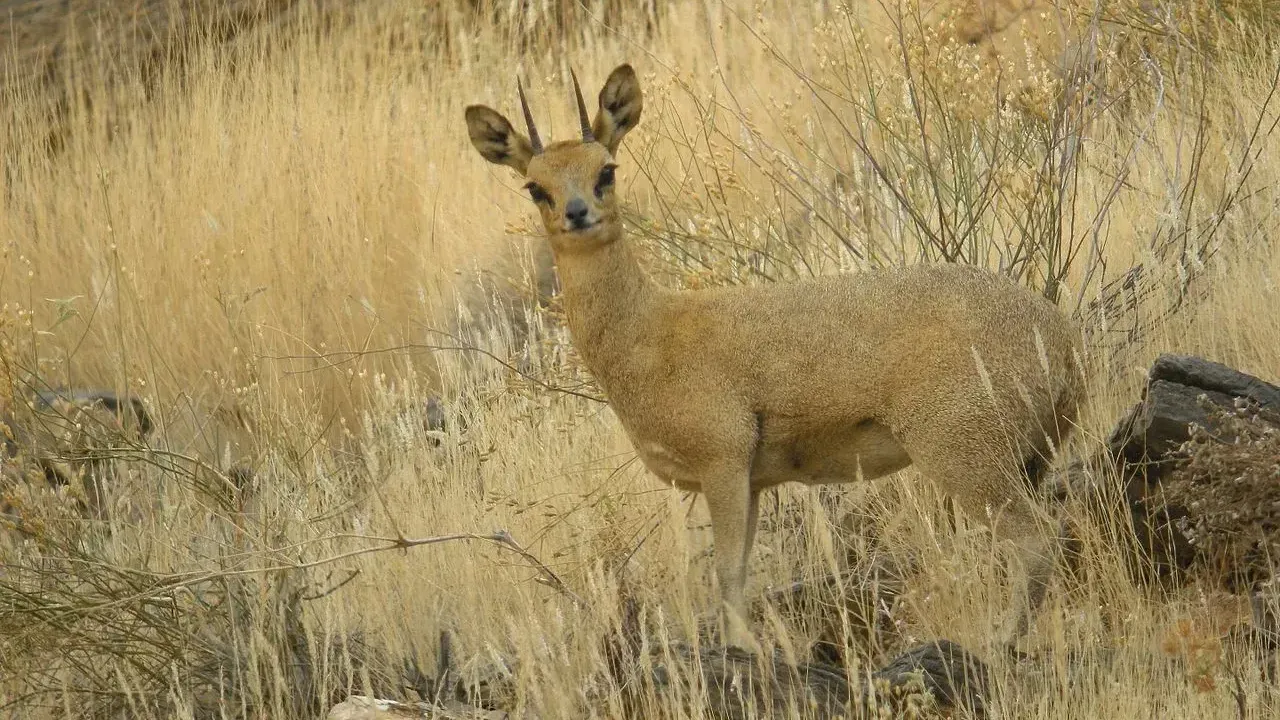 Dort können sie auch auf steilen Felsen festen Halt finden. Dadurch sind sie vor Verfolgern gut geschützt. Die Weibchen der Klippspringer werden ca. 60 cm groß, sie erreichen ein Gewicht von etwa 13 kg. Die Männchen sind etwas kleiner und leichter.