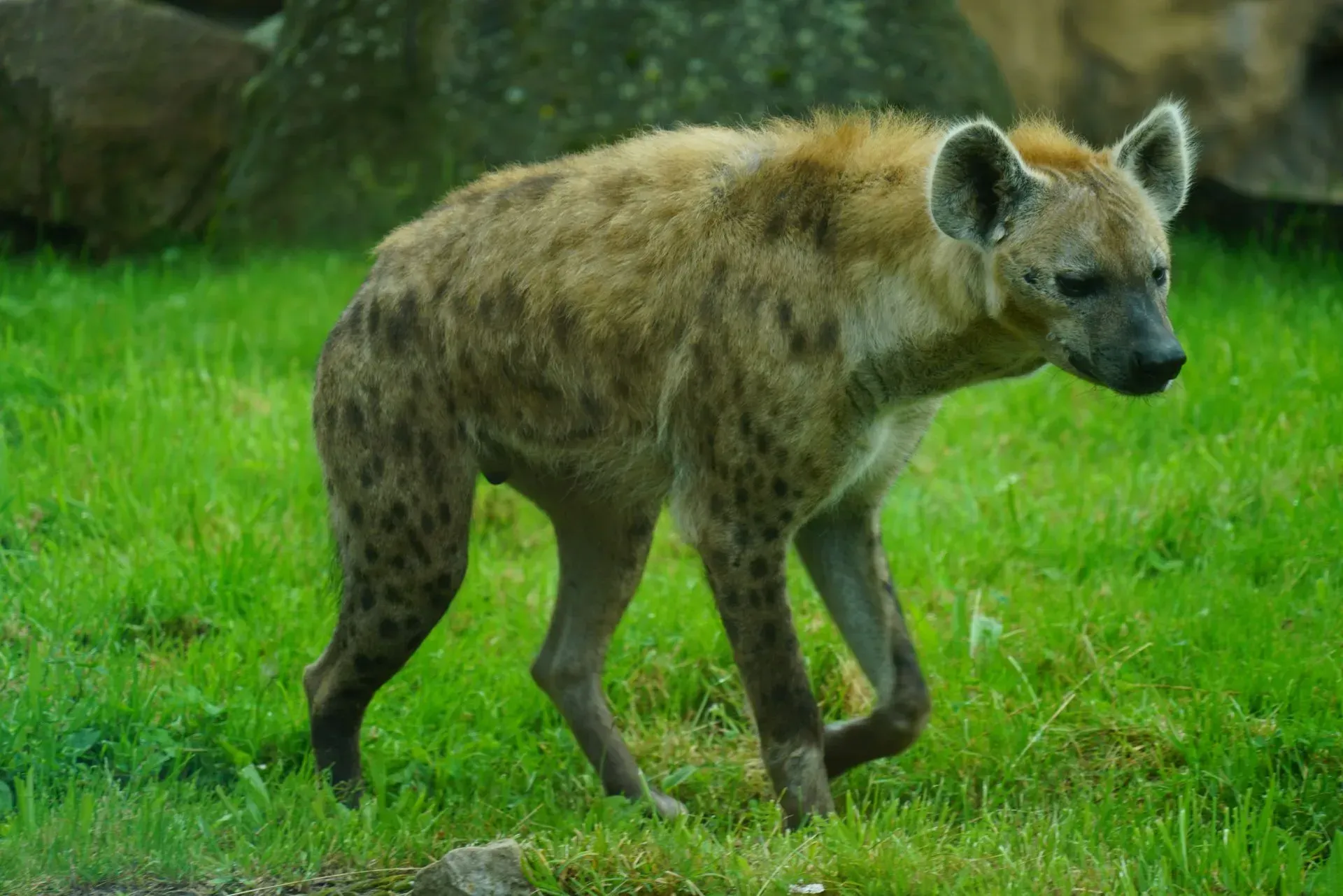 Tüpfelhyänen werden bis zu 180 cm lang und bis zu 90 cm hoch. Sie wiegen 40 bis 70 kg. Sie sind graubraun und tragen dunkelbraune oder schwarze Flecken. Ihr Körper ist vorn höher als hinten und sie können bis zu 65 km/h schnell rennen. Die Tüpfelhyänen kommen in den Savannen Afrikas südlich der Sahara vor.