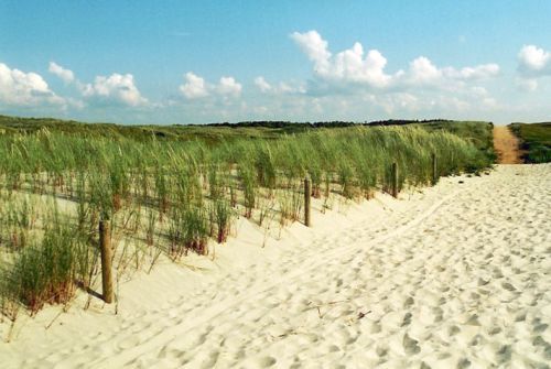 In den Dünen auf den Nordseeinseln darf man nur auf den markierten Wegen laufen. Denn sonst bilden sich kleine Rillen, aus denen der Wind den Sand wegbläst. Dadurch werden die Wurzeln des Strandhafers freigelegt und die Pflanzen gehen ein.