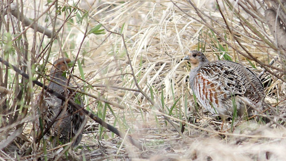 Rebhühner sind bei uns sehr selten geworden und vom Aussterben bedroht. Sie werden etwa 30 cm lang und 400 g schwer. Durch die graubraune Farbe ihres Gefieders sind sie sehr gut an ihren Lebensraum angepasst. Aber dieser Lebensraum wird immer kleiner. Sie brauchen eine Landschaft mit kleinen Feldern, mit vielen Hecken und breiten Ackerrändern. Hier können sie unter altem, hohen Gras Schutz vor Feinden und genügend Futter finden. Sie ernähren sich von Insekten, Spinnen und Wildkräutern. Sie brauchen auch sandige Mulden, in denen sie ihr Gefieder "baden" können.
