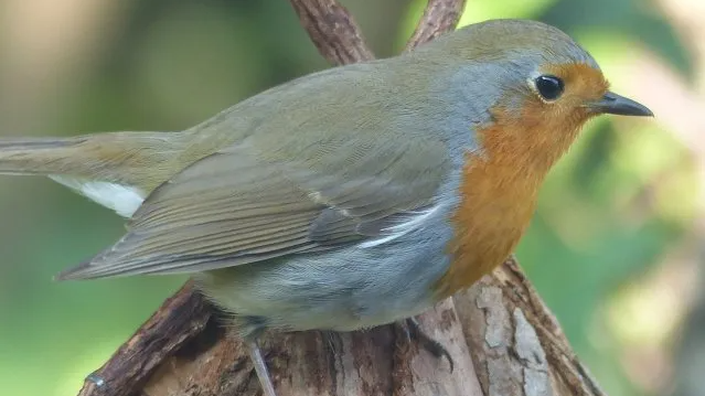 Die Brust und die Kehle dieses kleinen Vogels sind orangerot. Der Rücken ist bräunlich, die Augen sind auffallend schwarz. Das Rotkehlchen wird etwa 14 cm lang und wiegt 10 bis 20 Gramm. Es lebt in Wäldern mit vielen Büschen, in Gärten und Parks. Es bewegt sich oft auf dem Boden, um Nahrung zu suchen. Dort findet es kleine Käfer, Raupen, Spinnen, Würmer und Schnecken. Im Herbst vertilgt es gern Beeren und kleine Früchte.