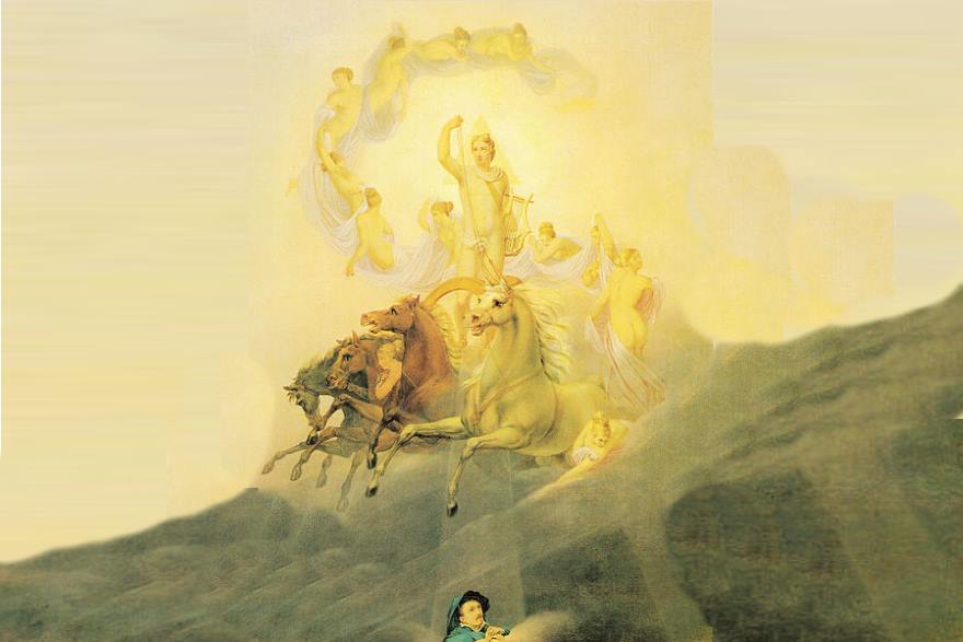 Im Altertum glaubten die Griechen, die Götter Helios oder Apollon zögen mit einem Sonnenwagen über das Firmament. In der Nacht kehrten sie in den Osten zurück, um ihre Fahrt am Morgen neu zu beginnen.