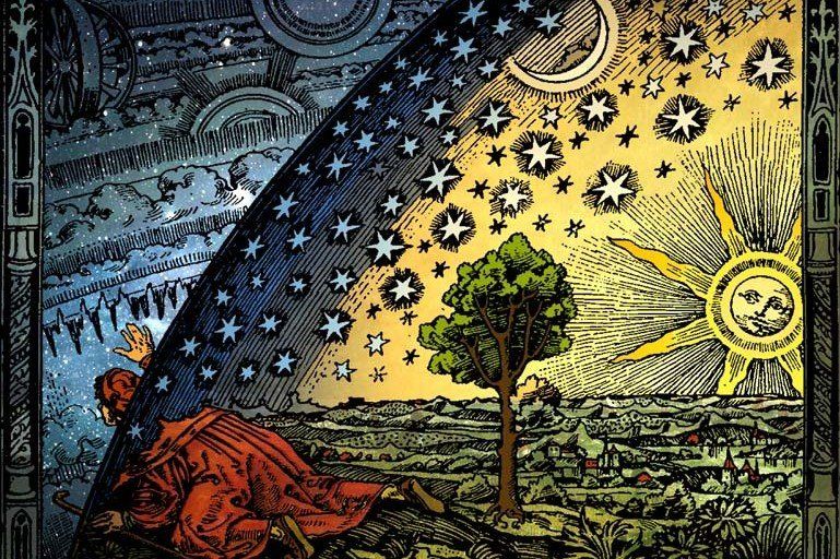 Und noch bis vor etwa 500 Jahren dachten die Menschen, die Erde sei der Mittelpunkt der Welt. Sie stellten sie sich als eine Scheibe vor, über die sich der Himmel wölbt. Am Himmel zögen Sonne, Mond und Sterne ihre Bahn. Auf geheimnisvolle Art gelange die Sonne in der Nacht zu ihrem Startplatz am Morgen zurück.