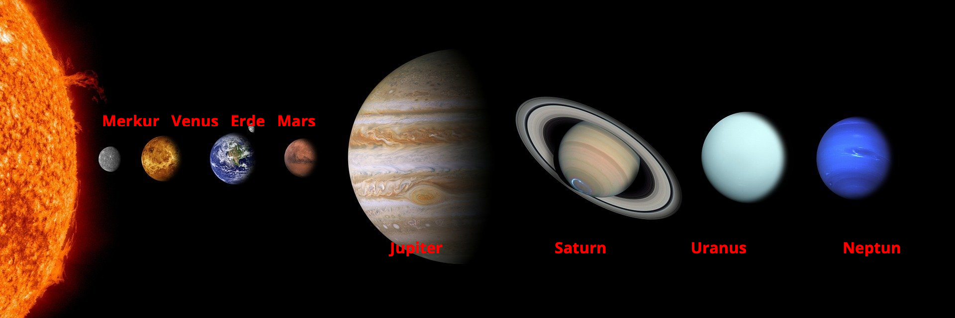 Planeten sind genau wie die Sonnen kugelförmige Gebilde. Manche Planeten werden von Monden begleitet. Zu unserer Sonne gehören acht große Planeten. Sie heißen Merkur, Venus, Erde, Mars, Jupiter, Saturn, Uranus und Neptun. Alle diese Planeten bewegen sich auf einer Bahn um die Sonne.