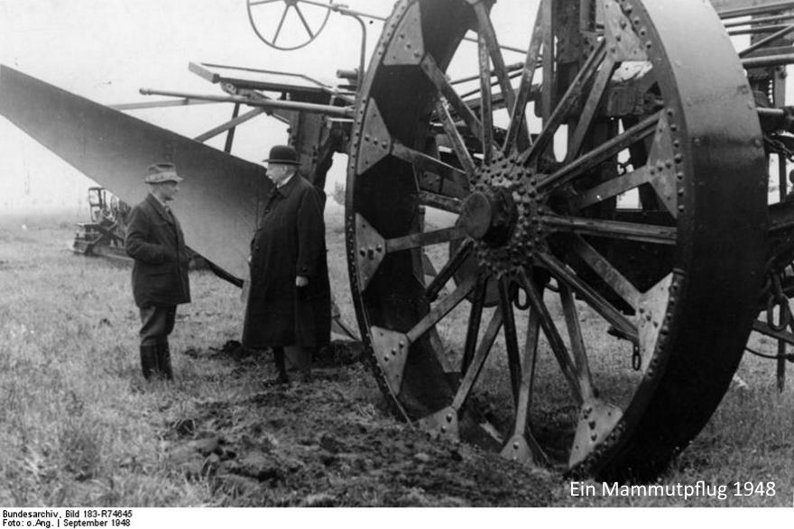 Nach dem 2. Weltkrieg wurden besonders viele Moore in Ackerland umgewandelt. Dazu benutzte man riesige Pflüge. Der Pflug "Mammut" der Firma Ottomeyer wurde mit Dampfmaschinen betrieben. Er konnte den Boden mehr als zwei Meter tief umpflügen.