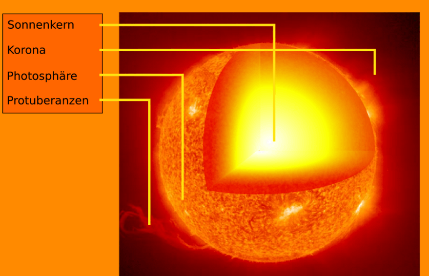 11. Wie heiß ist es a) an der Oberfläche? b) im Sonnenkern? c) in der Korona?