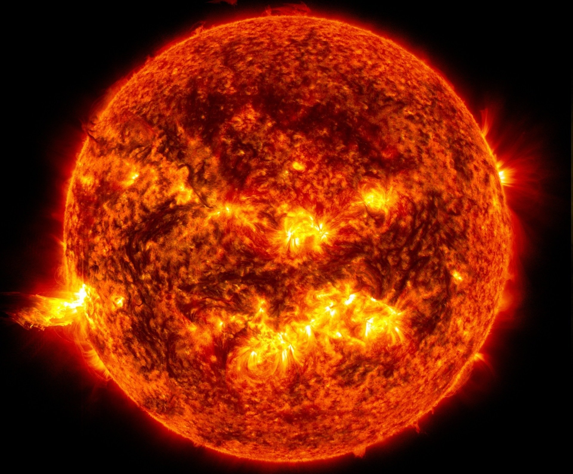 Die Sonne am 20. Juni 2013 mit einer starken Eruption auf der linken Seite und weiteren Eruptionen