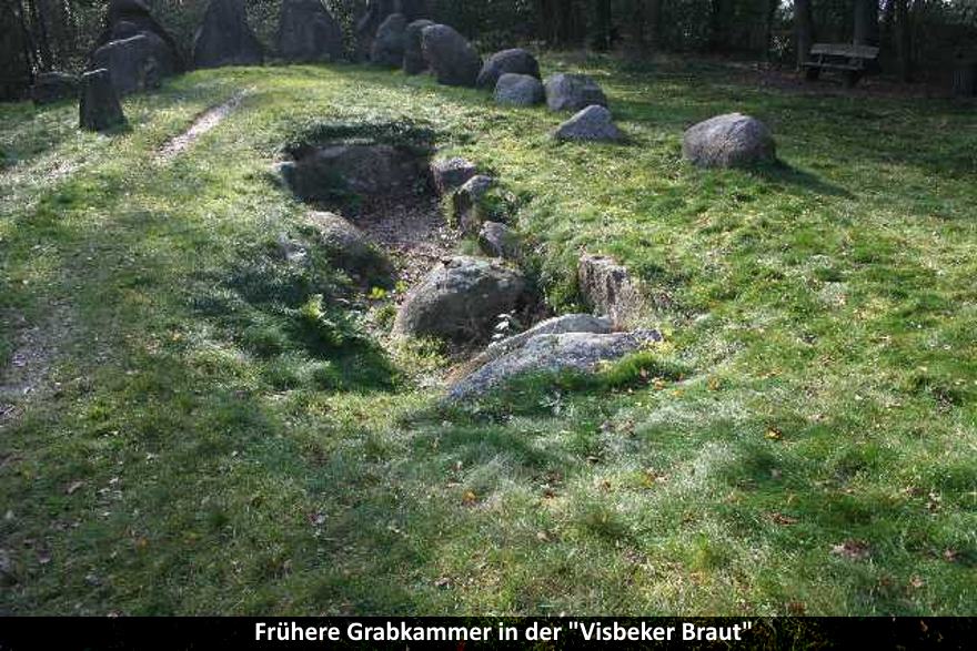 Die Anlage einer Grabkammer kann man in der Nähe des "Visbecker Bräutigam" bei dem "Heidenopfertisch" noch besser beobachten. Auf den Tragsteinen dieses Grabes lagen einmal drei Decksteine, von denen nur noch einer erhalten ist. Er ist etwa 5 m lang und wiegt ungefähr 40 Tonnen.