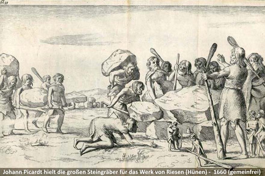 Der Arzt Johann Picardt lebte im 17. Jahrhundert. Er meinte, dass die großen Steine nur von Riesen bewegt worden sein konnten. Er vermutete, diese Riesen seien aus dem Lande Kanaan gekommen.