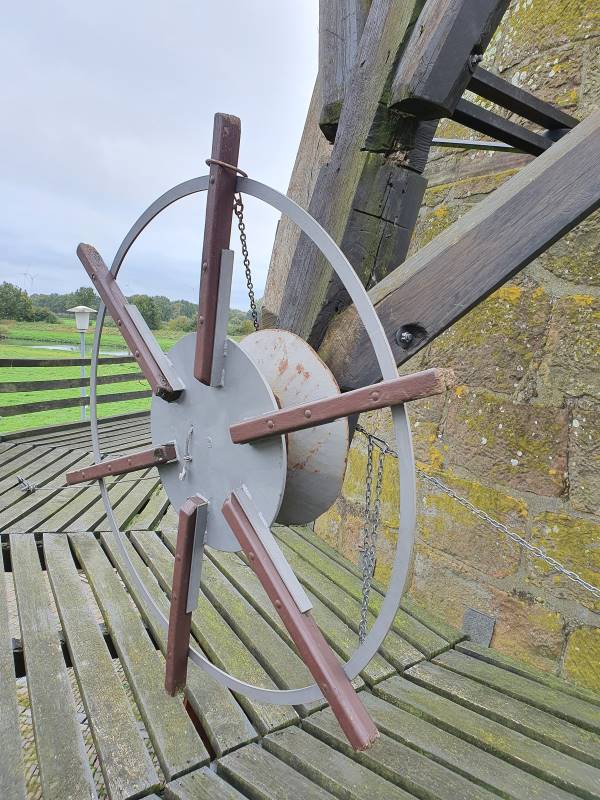 Außen verlief eine Galerie um die Mühle herum, auf der die Müller sich bewegen konnten. Da Mühlen dieser Art zuerst in Holland erfunden worden waren, nennt man eine solche Mühle Galerieholländer. Über die Galerie konnten die Müller zu dem Drehkasten gelangen. Damit richteten sie die Flügel so aus, dass sie optimal im Wind standen.