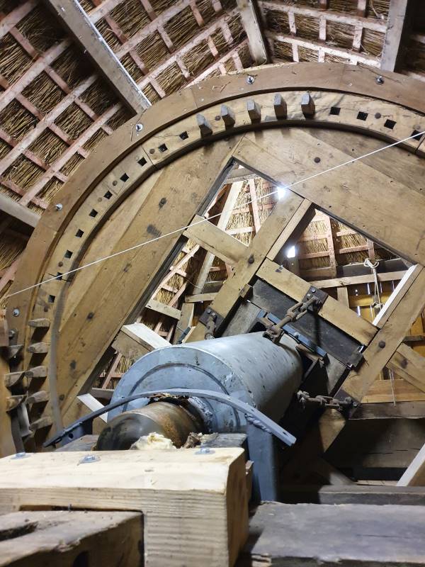 Die Rückseite der Mühle mit dem Drehkasten