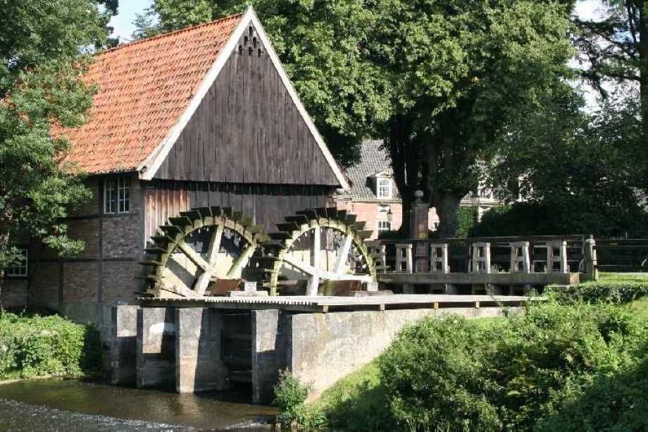 In der Grafschaft Bentheim liegt ein kleines Dorf, das sich Lage nennt. Hier gibt es bereits seit 750 Jahren eine Wassermühle, die im Laufe der Jahrhunderte mehrfach erneuert wurde. Das Wasser des Flusses Dinkel fließt unter zwei Wasserrädern hindurch und treibt sie an. Bei anderen Wassermühlen fließt das Wasser von oben auf die Räder.