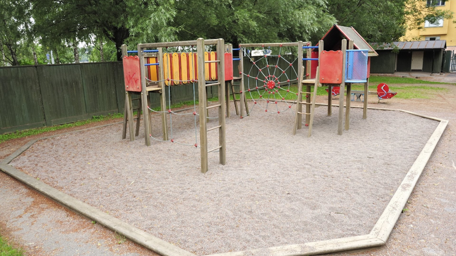 Am Morgen treffen sich alle Kinder auf dem großen Schulhof. In den Pausen spielen sie auch draußen. Es gibt eine Schaukel, ein Klettergerüst und eine Rutsche. Die Kinder können auch Fußball spielen.