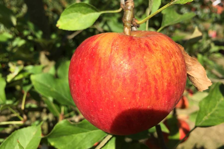 Äpfel wachsen an Apfelbäumen im Garten oder in einer Apfelplantage. Die Bäume blühen im Frühling. Aus jeder Blüte kann sich ein Apfel entwickeln. Vorher muss sie von einem Insekt bestäubt werden.