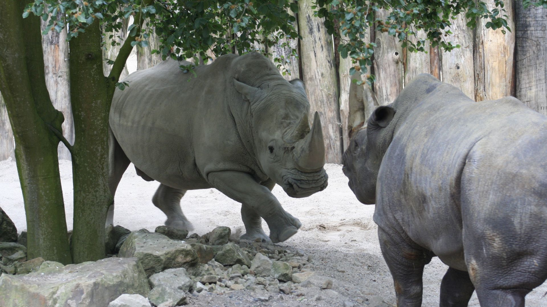 Die beiden Nashörner haben wieder einmal Streit. Es sind rechte Angeber und jedes brüstet sich damit, das stärkste Nashorn weit und breit zu sein. Man kennt das ja.