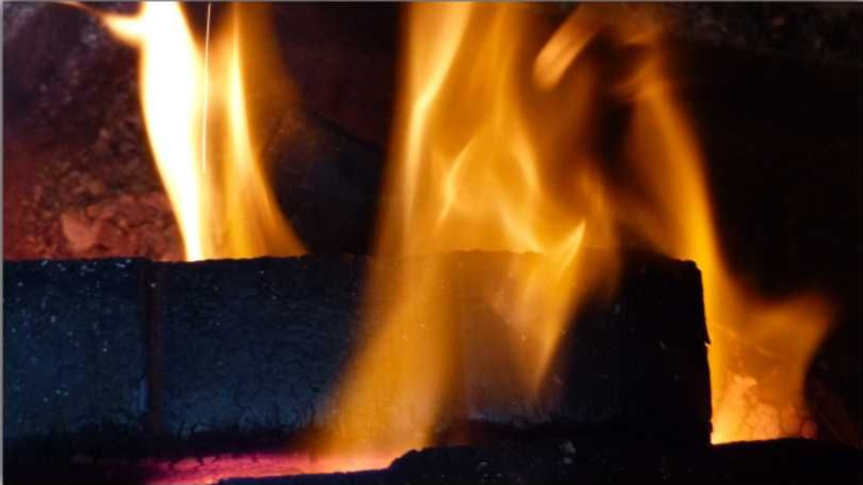 Als er am nächsten Tag mit seinen Schweinen zurückkehrte, erschrak er. Das Feuer brannte noch immer und hatte sich sogar ausgebreitet. Nun schaute er genauer nach und sah, dass die glänzenden schwarzen Steinbrocken sich entzündet hatten, die er hier schon häufig gefunden hatte. Sie waren es, die das Feuer nährten.