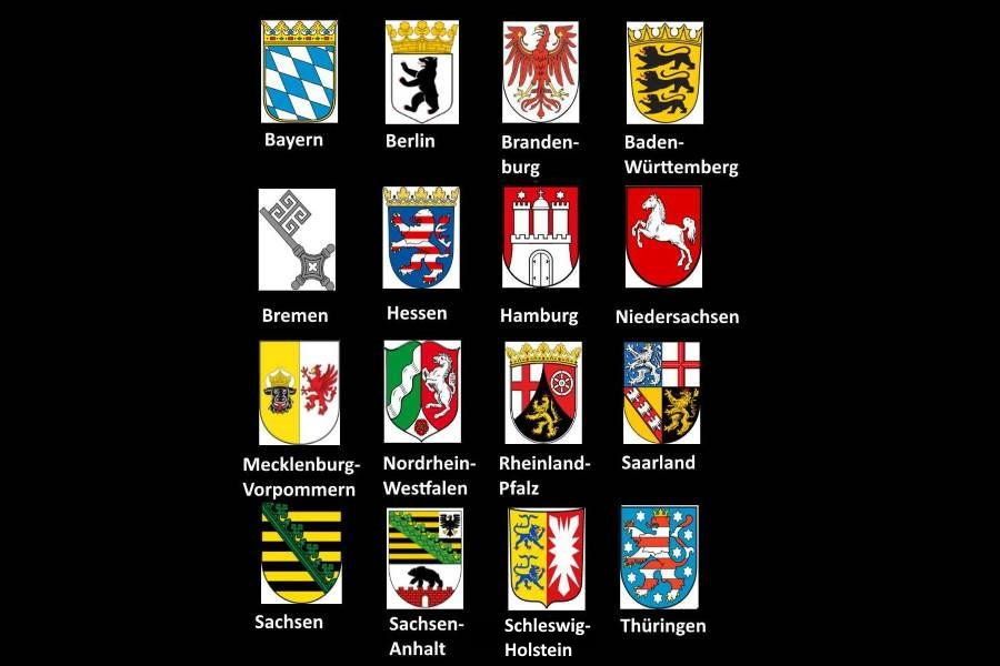 3 - Außerdem kommt in dem Namen unseres Staates noch das Wort Bund vor. In Deutschland gibt es nämlich 16 Länder. Sie haben sich zu einem Bund zusammengeschlossen, deshalb nennen wir sie Bundesländer. Sie heißen: Baden-Württemberg, Bayern, Berlin, Brandenburg, Bremen, Hamburg, Hessen, Mecklenburg-Vorpommern, Niedersachsen, Nordrhein-Westfalen, Rheinland-Pfalz, Saarland, Sachsen-Anhalt, Sachsen, Schleswig-Holstein und Thüringen.
