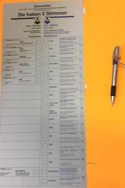 Im Wahllokal bekommt man einen Stimmzettel. Bei Bundestagswahlen hat jeder Wähler zwei Stimmen. Eine Stimme gibt man einem Kandidaten oder einer Kandidatin in dem Wahlkreis, in dem man lebt. Mit der zweiten Stimme entscheidet man sich für eine Partei.