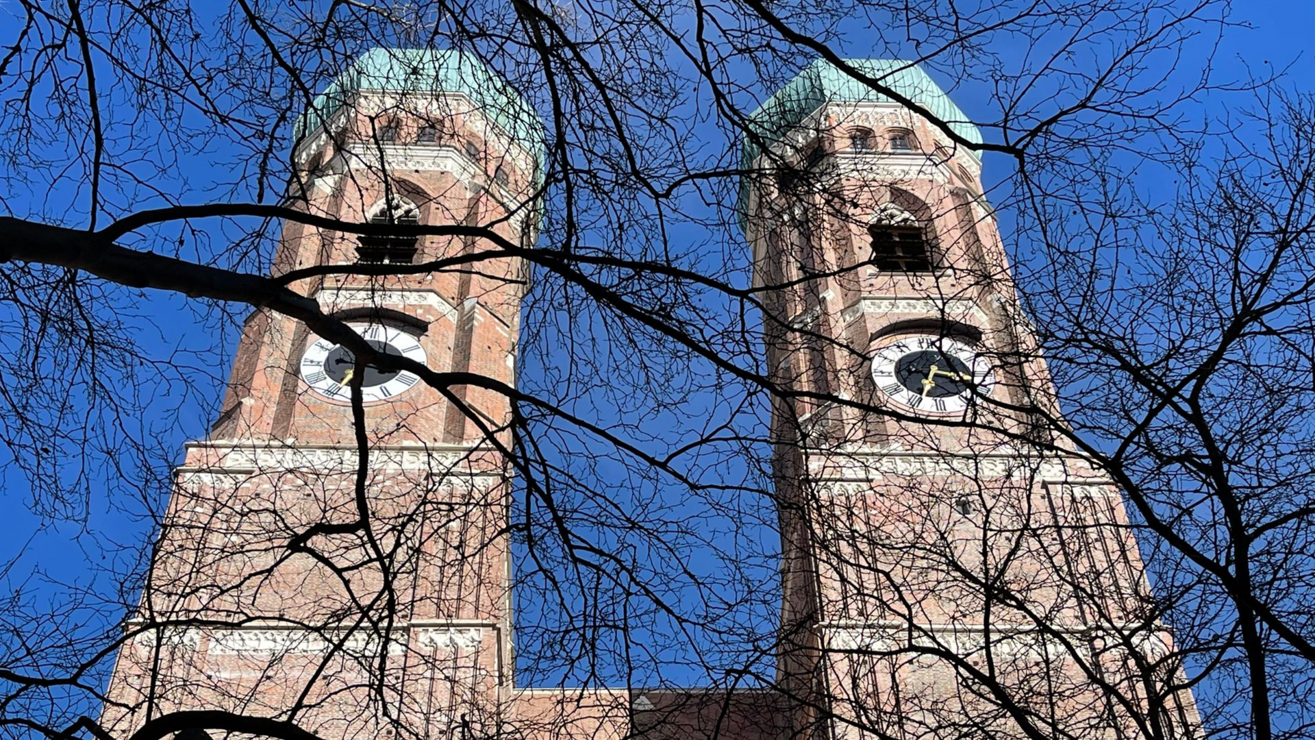 Auch in München steht eine solche Kathedrale. Man nennt sie hier auch "Dom Zu unserer Lieben Frau", kurz Frauenkirche oder Liebfrauendom genannt. Sie ist der Gottesmutter Maria geweiht und befindet sich westlich des Marienplatzes. Seit 1821 ist sie die Bischofskirche des Bistums von München und Freising. Bereits 1494 wurde diese Kirche errichtet. Sie besteht aus drei Schiffen, ist aus Backstein erbaut und 109 Meter lang sowie 40 Meter breit. Die beiden Türme erreichen eine Höhe von etwas mehr als 98 Metern. Wie viele andere Kirchtürme in Bayern sind die Spitzen in Form einer Zwiebel ausgeführt.