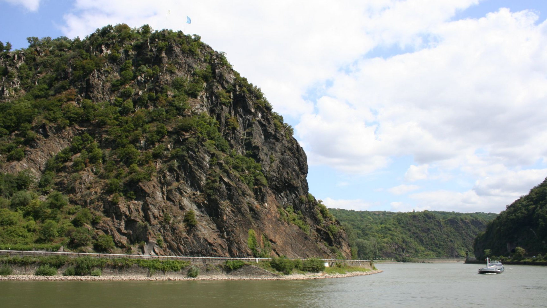 Der Rhein an der Lorelei, einem Schieferberg, der 132 Meter hoch ist