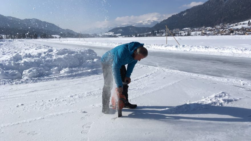 2 - Das ist ziemlich viel Arbeit und man muss den See sehr gut kennen. Norbert Jank ist seit 1988 der offizielle Eismeister vom Weissensee. Der See liegt in Österreich. Er ist bisher in jedem Winter zugefroren, denn er befindet sich ziemlich hoch in den Bergen. Von Dezember bis März kommen jedes Jahr Tausende Besucher dorthin.