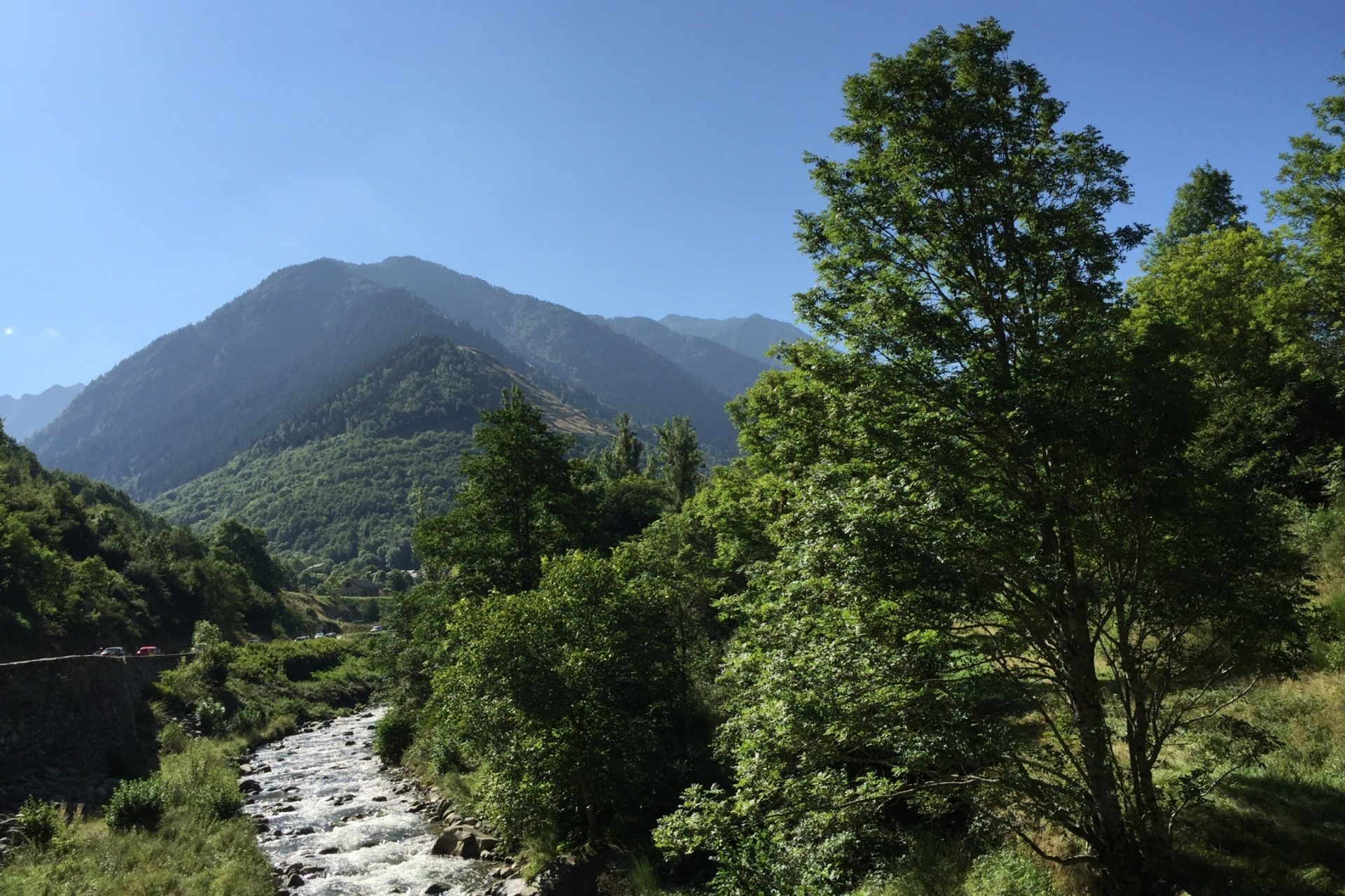 Auf beiden Seiten der französisch-spanischen Grenze liegen die Pyrenäen . Sie bilden eine rund 430 km lange Gebirgskette zwischen dem Atlantischen Ozean und dem Mittelmeer. Der höchste Berg ist der Pico de Aneto mit einer Höhe von 3404 Meter. Rund 200 Gipfel der Pyrenäen sind höher als 3000 Meter. n den Pyrenäen liegt auch der Kleinstaat Andorra.