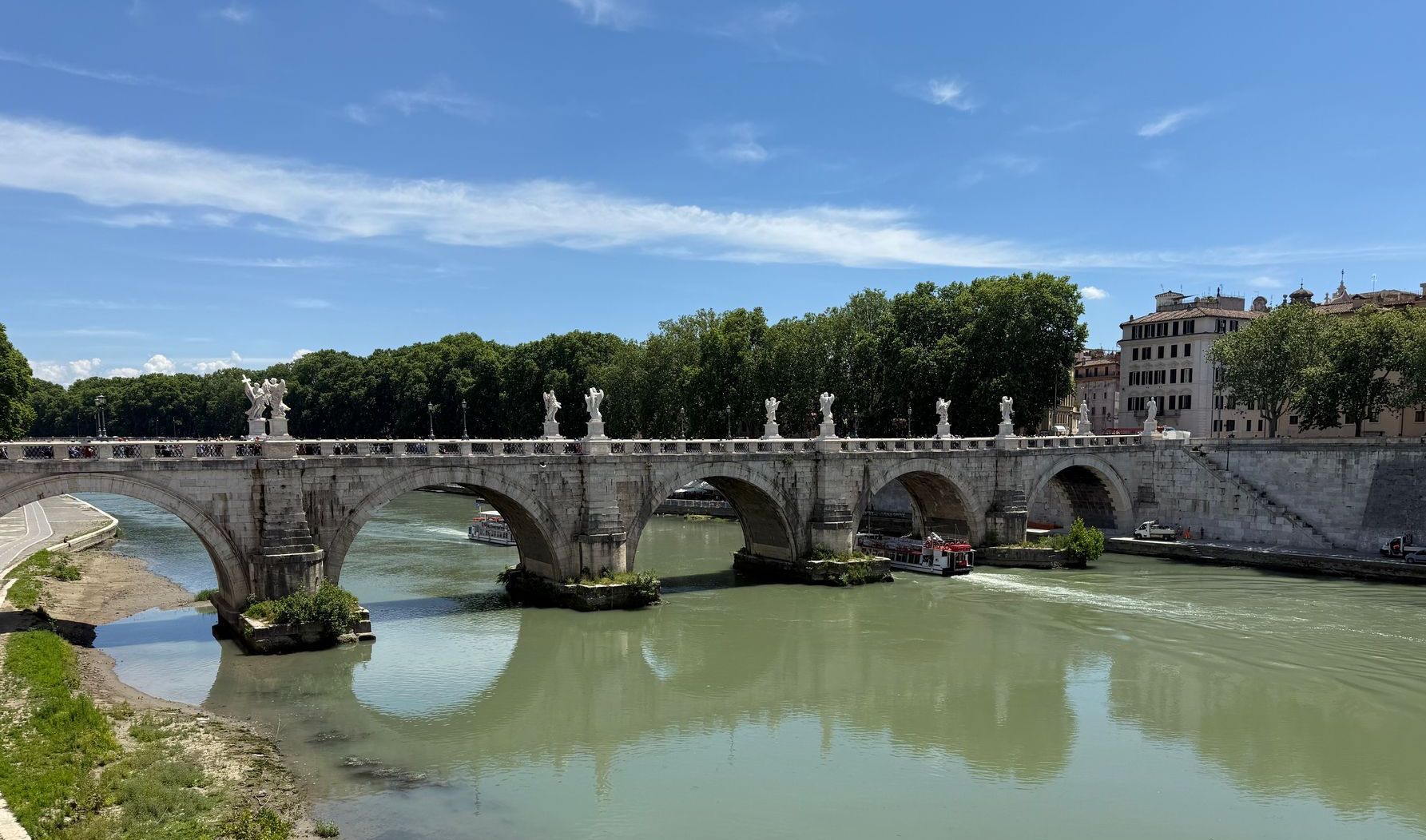 Das war früher sehr praktisch, denn so konnten die Römer ihre Cloaca Maxima, die Abwasserleitung der Stadt, in den Fluss leiten. Auch heute gilt der Tiber nicht gerade als sauberer Fluss. Eine Fahrt mit dem Boot ist dennoch ein schönes Erlebnis.