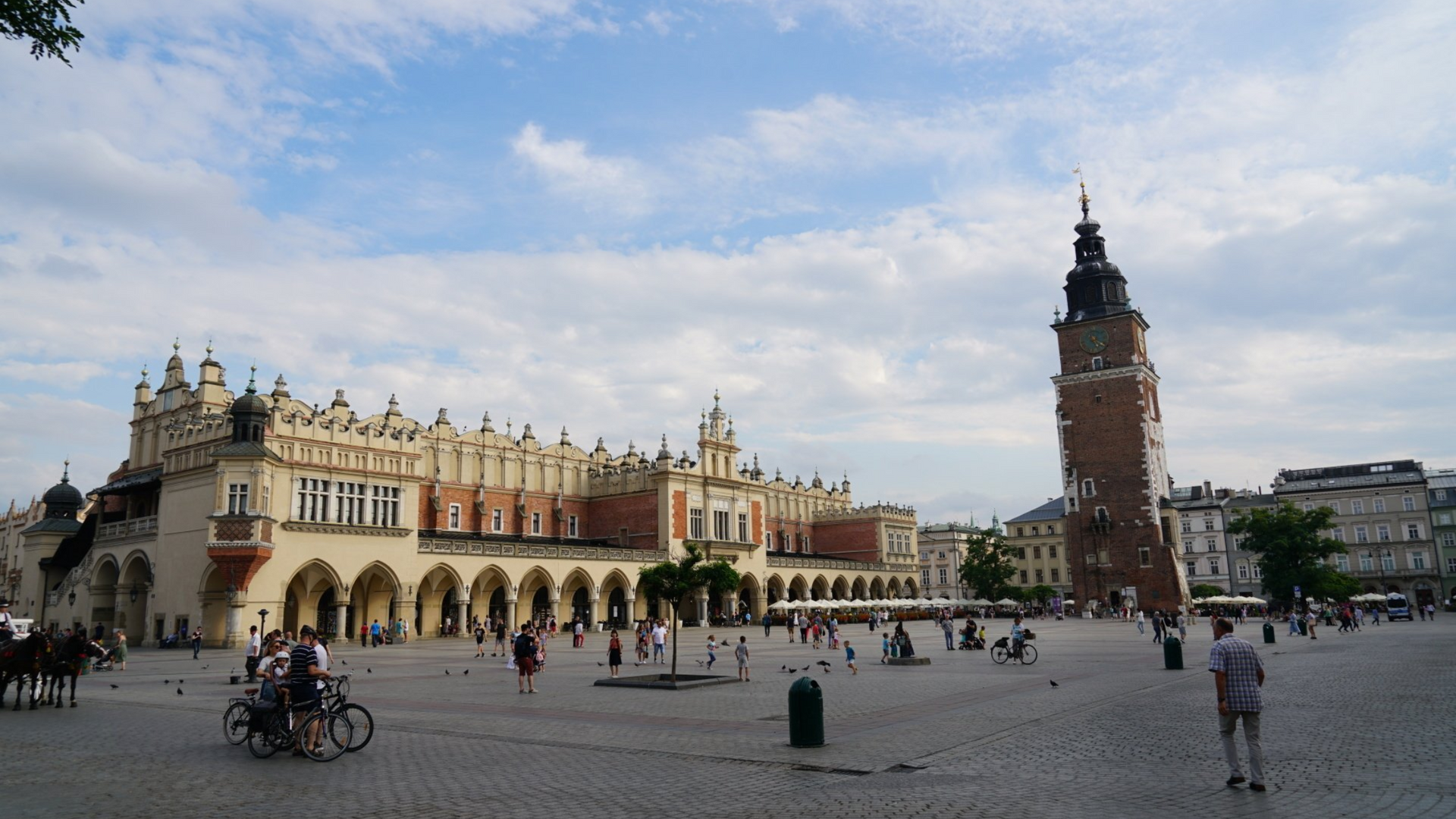 Marktplatz der Stadt Krakau mit den Tuchhallen und dem Rathausturm